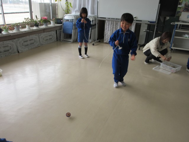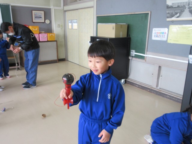 コマ回し名人、けん玉名人、お手玉名人・・・・1年生にはいろいろな名人がいっぱいいます。
