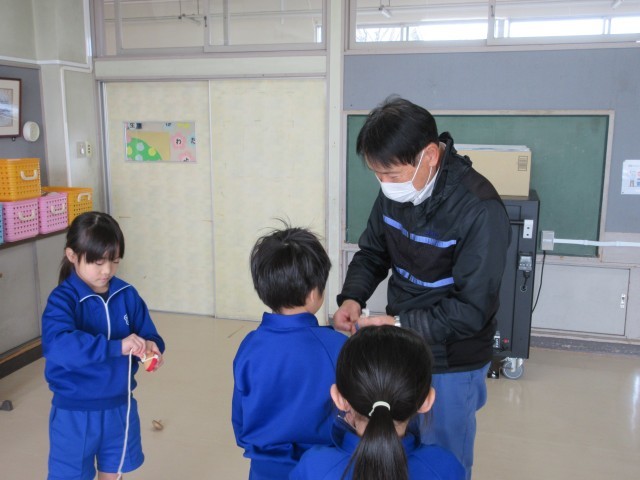 1年生の生活科の授業では、「むかしのあそびをたのしもう」の学習です。