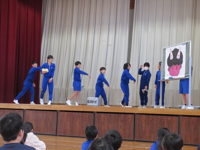 代表委員会による劇やクイズで「節分」について楽しく学ぶことができました。