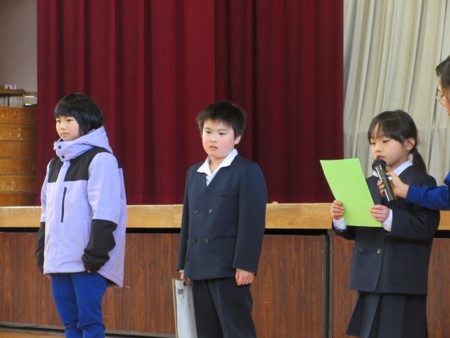 また、各学年代表児童が「ぼく・わたしが退治したいオニ」について発表しました。
