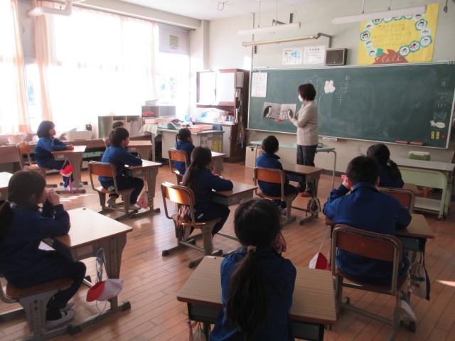 ボランティアの皆さんが、子どもたちに合わせて「しりとりがだいすきなおうさま」「とうさんのあしのうえで」「ゆきむすめ」「いただきます」「クジラがしんだら」「みつごやまのおに」の本を読み聞かせしてくださいました。