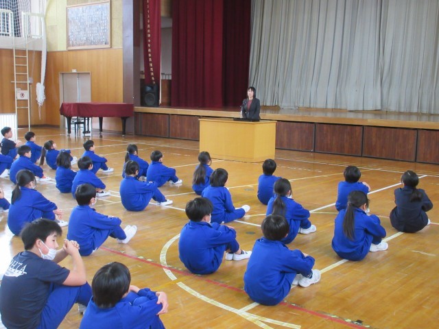 続いて、校長から「3学期の学校生活の様子」と「友達のよさを見つけること」について話をしました。
