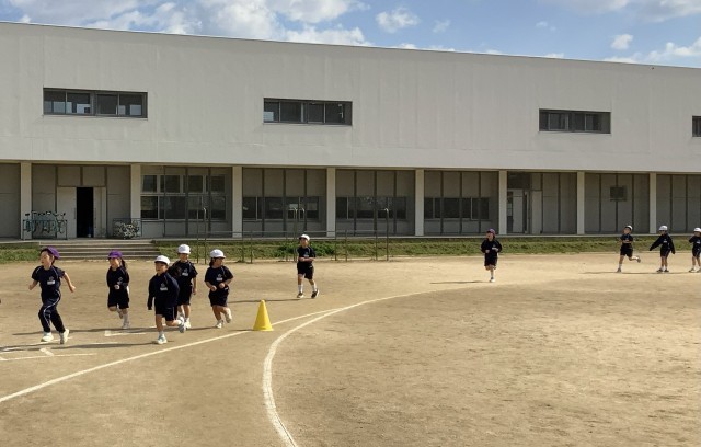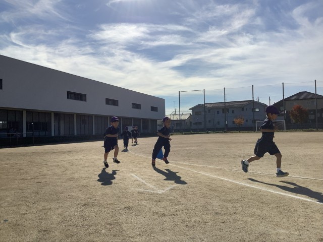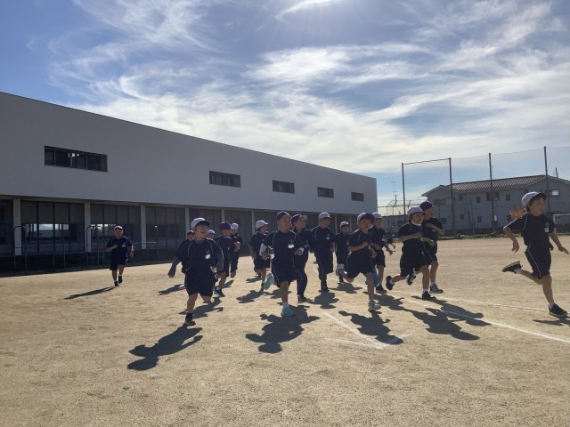 気持ちの良い秋晴れの下、初めての持久走記録会を行いました。