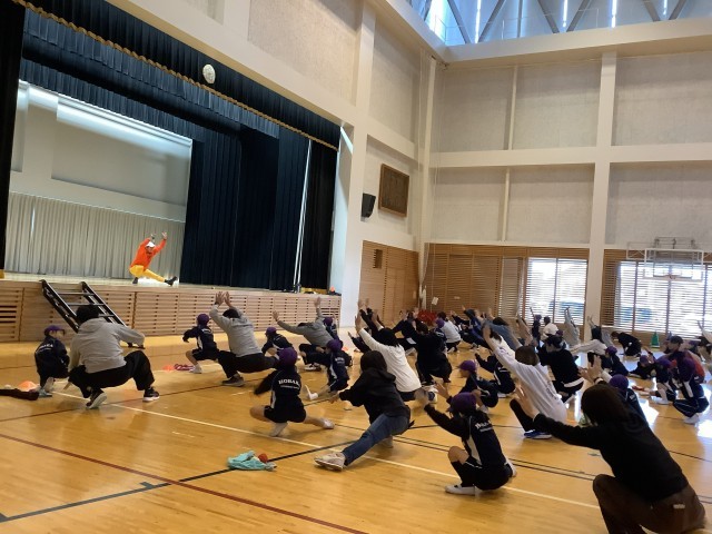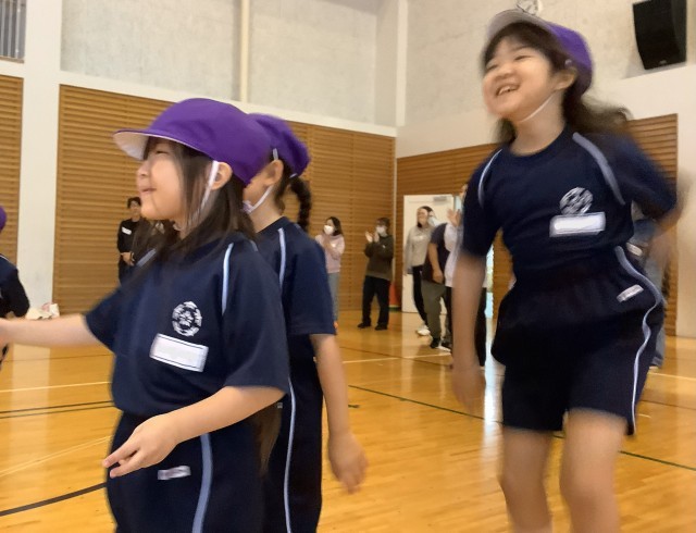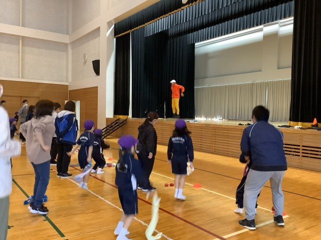 講師の先生をお迎えし、準備体操、リズムジャンプ、親子リレーに取り組みました。