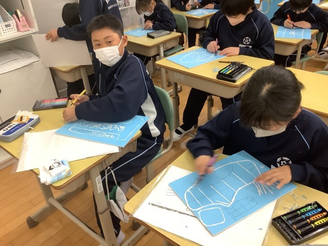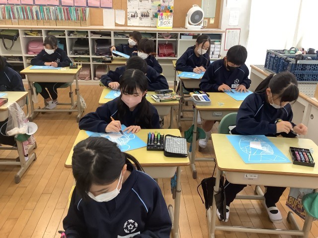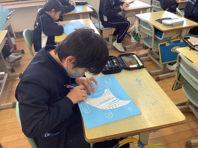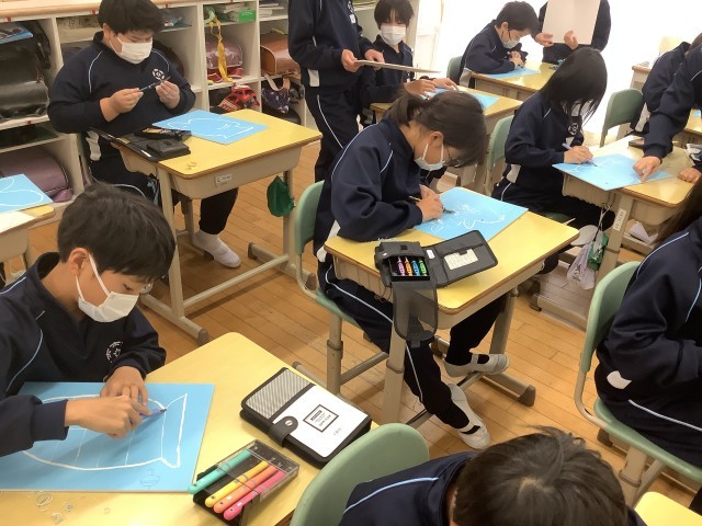 4年生 図工の時間です。3クラス一斉に図工をしました。
