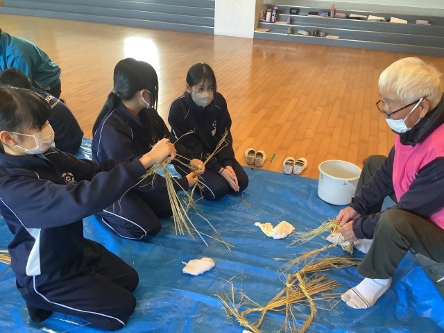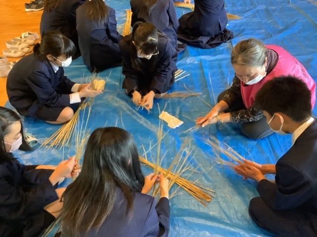 今日は地域の方を講師にお招きして,日本文化クラブで「正月飾り作り」を行いました。