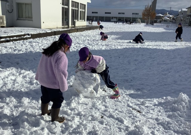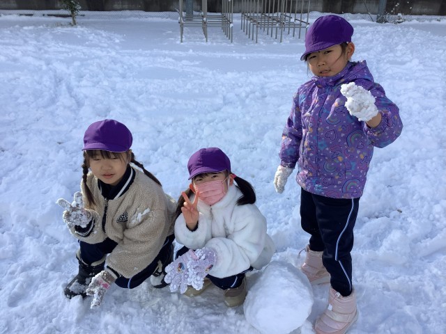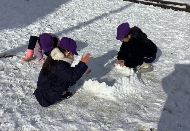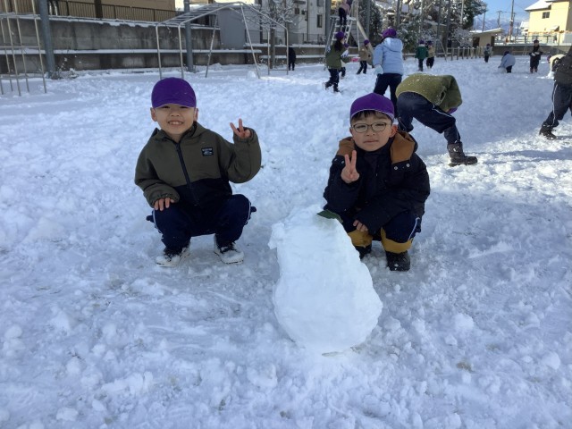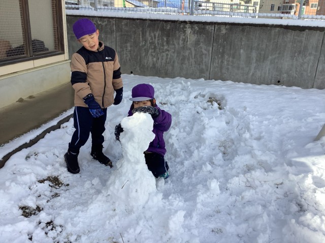雪だるまやかまくらを作ったり、雪の上でおにごっこをしたりと寒さに負けず楽しく遊びました。