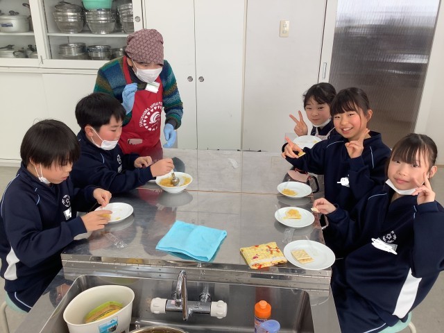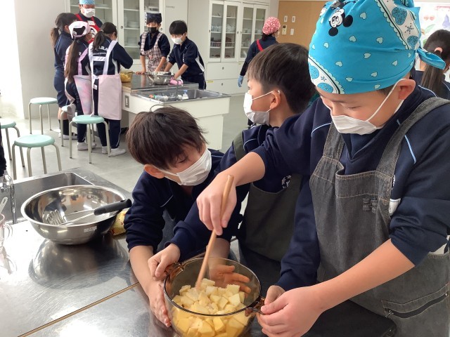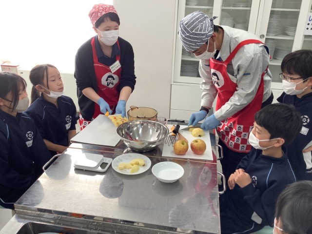 4年生の食育講座ではJAの方々に来ていただきりんごジャムを作りました。