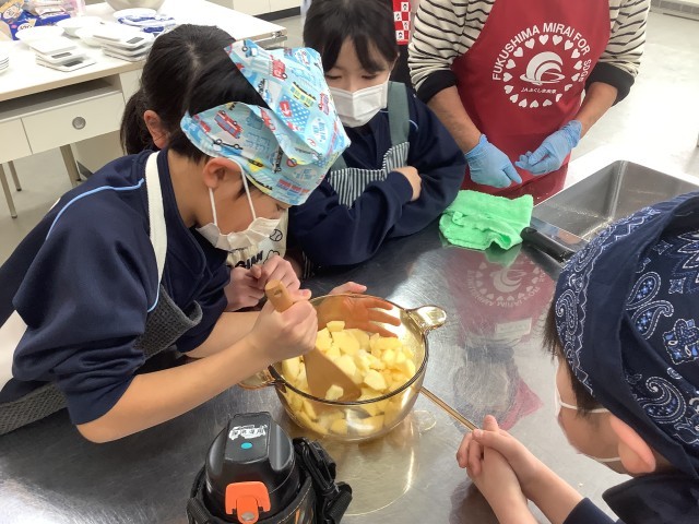 福島県産のふじりんごを使った,美味しいジャム作りを教えていただきました。
