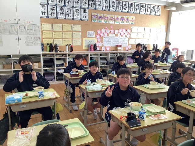 今日の給食は、牛乳、味噌ラーメン、唐揚げ、ブロッコリーサラダにクレープでした。食べる量が増え、どのクラスも完食する日が増えています。最高学年に向けて、体も心も大きくしよう!