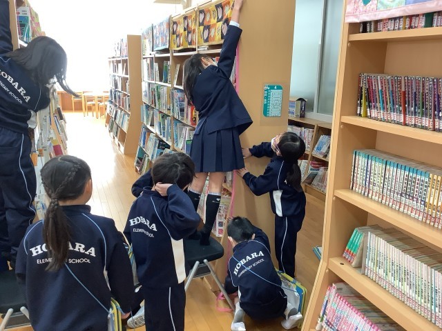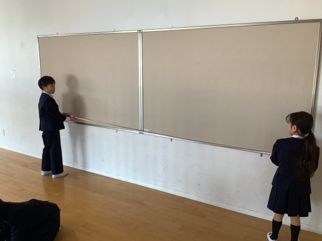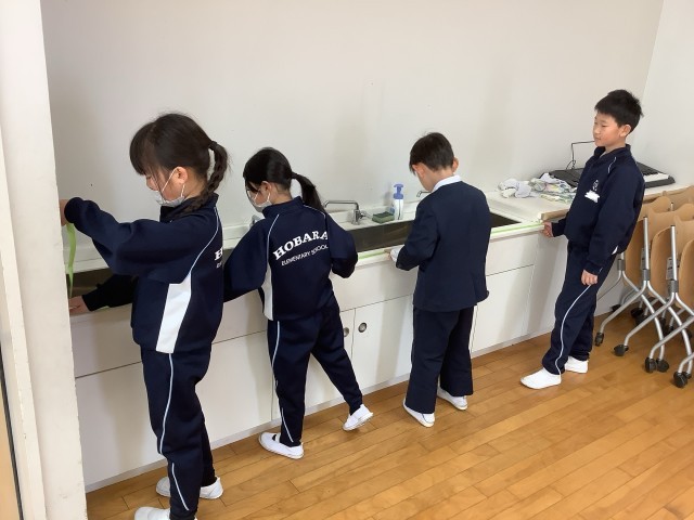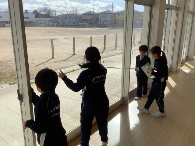 算数の時間では、自分たちで作った3m物差しを使って、校舎内にある様々なものの長さを測る活動をしました。「思ったよりも長くてびっくりした」「目印をつければ3mより長いものも測れる」など、活動を通して新しい発見をたくさんしました。