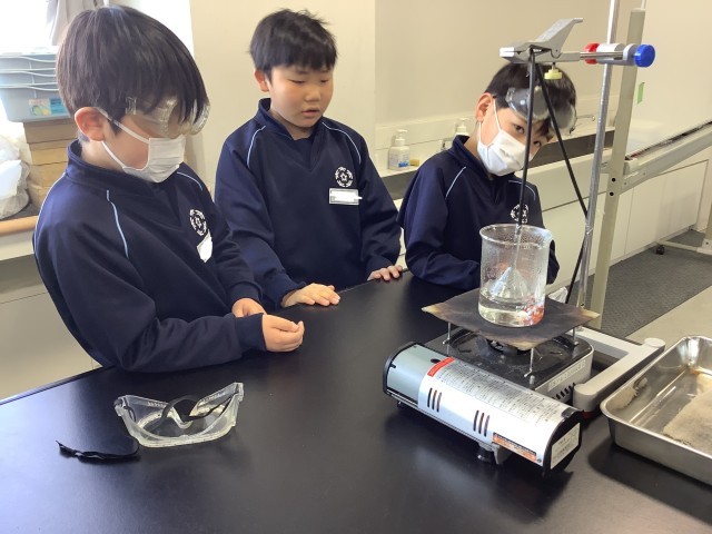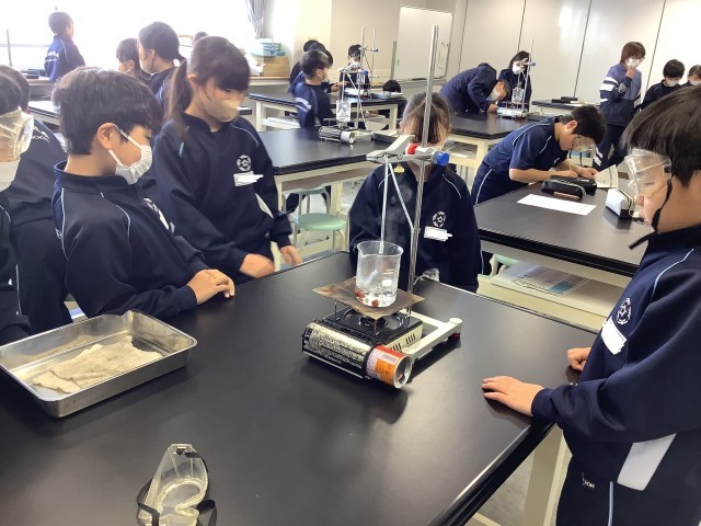 理科では,水を温めた時にでる泡の正体は何かを実験しました。「あっ!」と気づきの声がたくさん聞こえてきました。