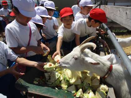 安齋さんのご厚意で,今年もヤギの見学をさせていただきました。今年は子ヤギが3匹生まれ,かわいい姿を観察することができました。