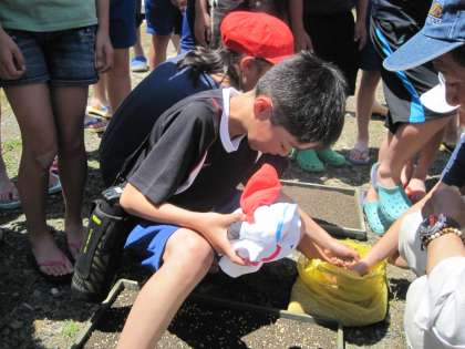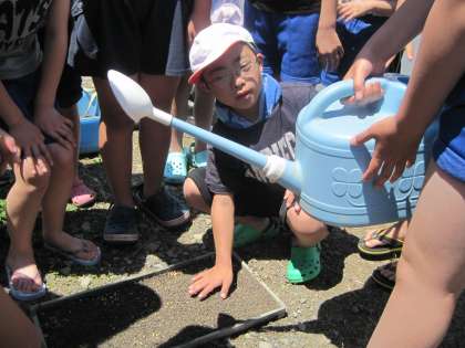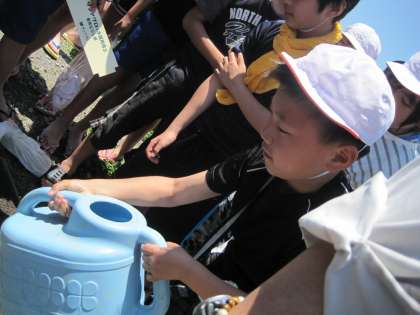 赤井さんをはじめ、6人の方にお手伝いしていただ種をまいて苗床を作りました。