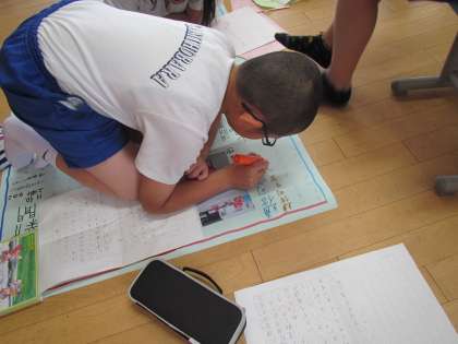 新聞作りに夢中の4年生。