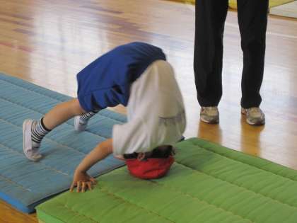 今日は,体育専門アドバイザーの先生より,マットを上手に転がるコツや,前転のコツを教えていただきました。1年生は,今日が初めてのマット運動です。はじめは緊張していた子どもたちも,何度か挑戦するうちに,どんどん上手になってきました。挑戦する子どもたちの目は真剣です。「目が回る。」「楽しい。」「もっと挑戦したい。」との声が多く聞かれました。今度はもっと別な技にも挑戦してみたいですね。