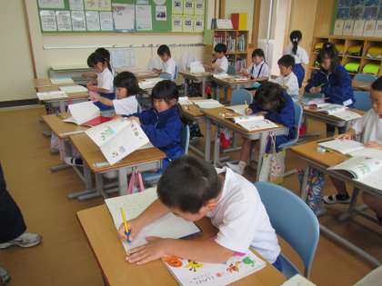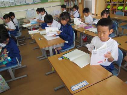 あいさつを終えた子どもたちは、速やかに次の授業の準備です。