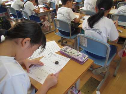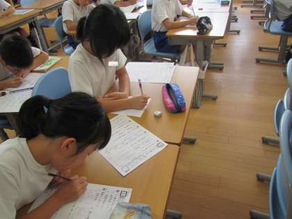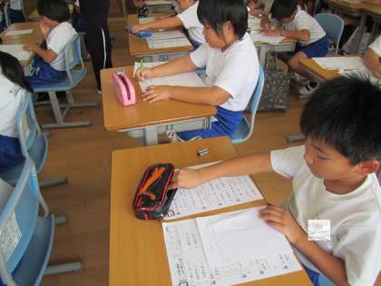算数のプリントを真剣に取り組む子どもたち。