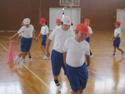10月1日,すこやか教室として,大内コーチに体育科の授業をして頂きました。跳んだり走ったり,体つくりの運動を楽しく行いました。「あきらめないでチャレンジする気持ちをもつこと」の大切さも教えて頂きました。