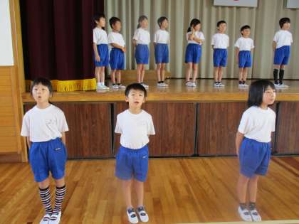2年生も道徳劇「かぼちゃのつる」の練習をがんばっています。登場のタイミングや位置を確かめながら真剣に取り組みました。