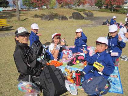 たくさん遊んだ後は,おいしいお弁当の時間です。お腹もペコペコ。あっという間に完食してしまいました。