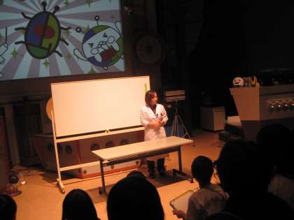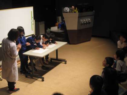 11月6日、3年生はムシテックワールド体験学習にいってきました。最初はサイエンスショーでした。光の実験でした。