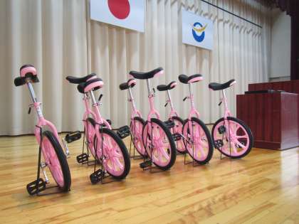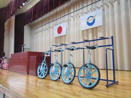 昨日、伊達市防犯協会連合会上保原支部の皆様方から、12台一輪車と一輪車ラックを頂きました。