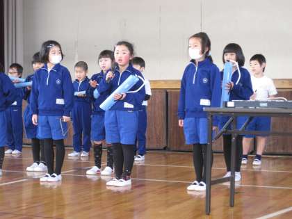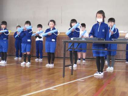 はじめは1年1組さんの音楽発表です。気持ちを1つにしたきらきら星の演奏がとても素敵でした。