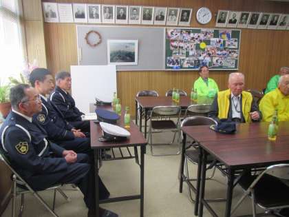 家庭の交通安全推進員委嘱状交付式・見守り隊顔合わせ式・交通安全教室のために、警察署、交通安全協会、見守り隊の方々においでいただきました。
