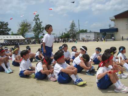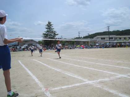 初めての下学年リレーは,赤白引き分けでした。代表選手も,応援の皆さんも頑張りました。
