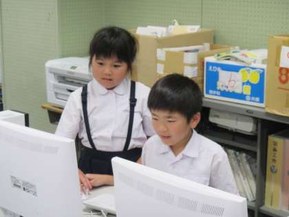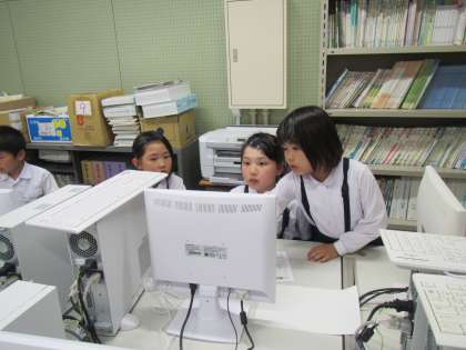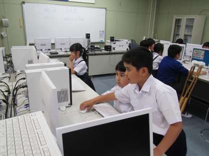 パソコン室で、理科の学習中。