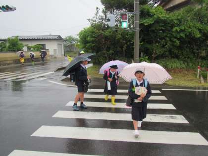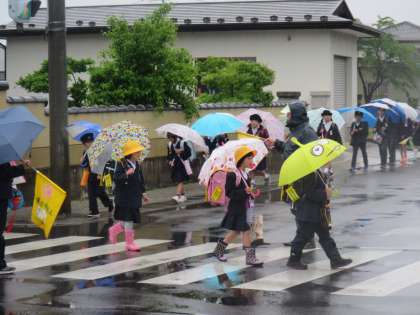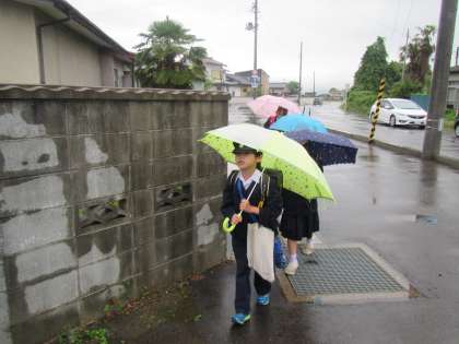 雨の日の登校。