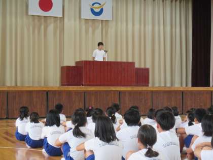 学校代表として出場する鹿野君の発表をみんなで聴きました。