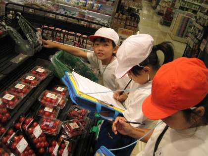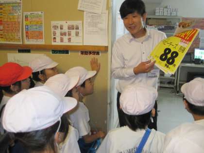 スーパーマーケットの見学に行ってきました。バックヤードでは,冷凍庫や野菜の加工室をのぞかせてもらいました。