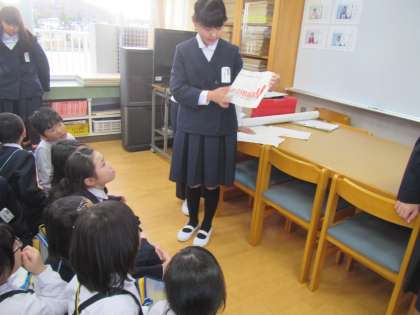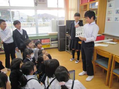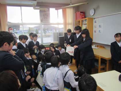 見学来た3年生にクイズを出しています。