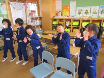 「あわてんぼうのサンタクロース」を元気に歌っています。