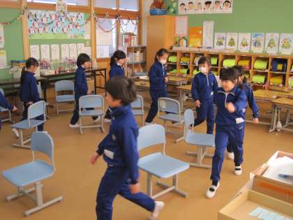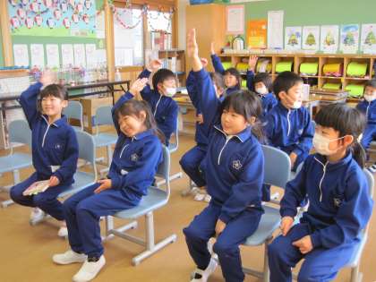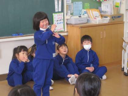 学期末の学活でお楽しみ会を行いました。みんなで協力して楽しみました。ジェスチャーゲームやクイズ,いすとりゲームをしました。みんな笑顔。