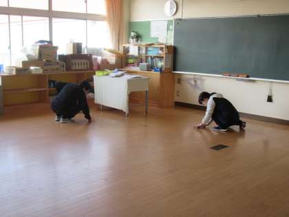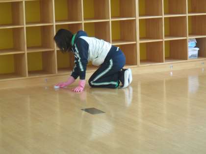 今日は、先生方で教室のワックス塗り。