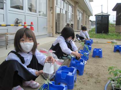ミニトマトの苗を植えたり,家庭学習で仕上げた課題を提出したりできました。今日会えなかった友達にも,水曜日には会えますね。