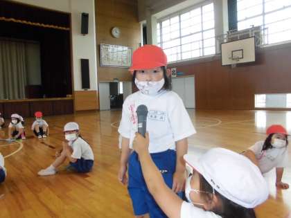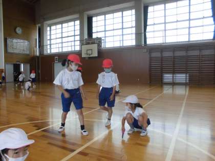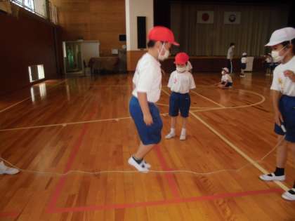 自己紹介の後はなわとびで遊ばせてもらいました。2年生に8の字とびのやり方を教えてもらい,上手に跳べるようになったようです。「もっともっと一緒に遊びたい」という思いがあふれていました。2年生のお兄さんお姉さんの姿が輝いて見えたようです。