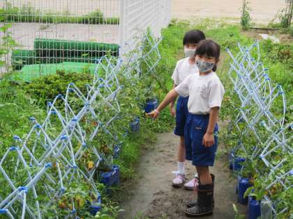 アサガオ、ミニトマト、気になる、気になる!