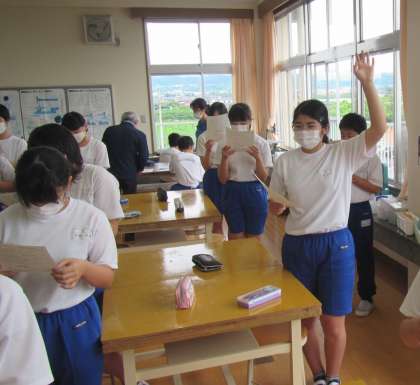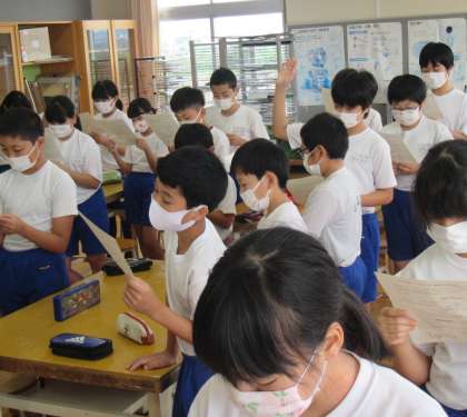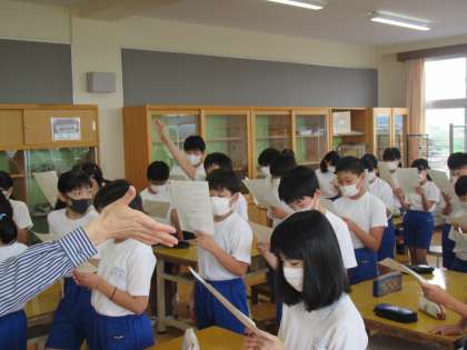 実施案を読み通した子どもたちが、校長に合図を送っています。