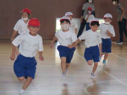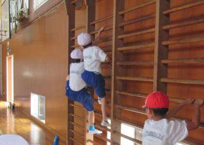 ぼくたちは、体育館で遊んだよ。