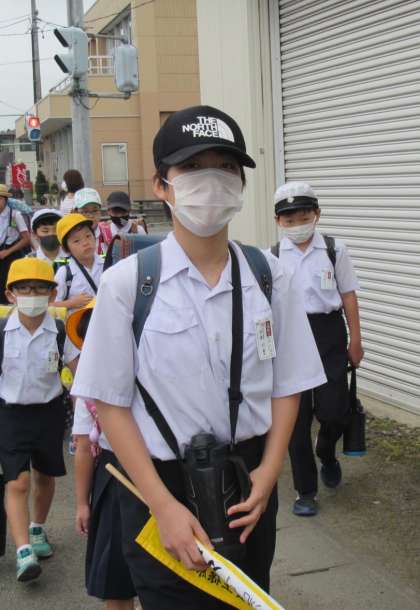 班のみんな、班長さんを困らせないように、ルールを守って歩こう。