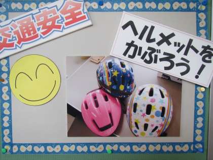 自転車に乗る際は、必ずヘルメットをかぶりましょう。