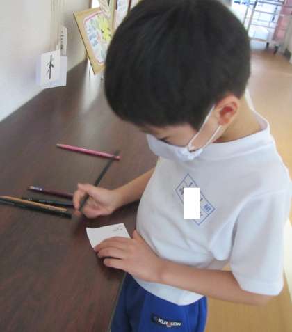 「朝ご飯をしっかりと食べてきたから、ここに名前を貼るんだ。」と、子どもたち。