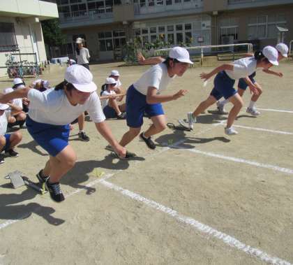 暑い中でもがんばる6年生。