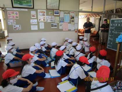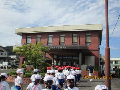 6月に行った町探検。季節が変わり、子どもたちもちょっぴり成長した目線で同じ場所を探検すると、いろいろな発見がありました。上保原交流館にもおじゃましてお話を聞くことができました。