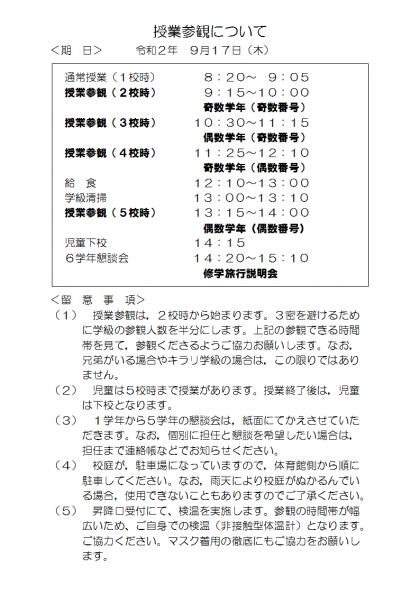 明日は、授業参観日!