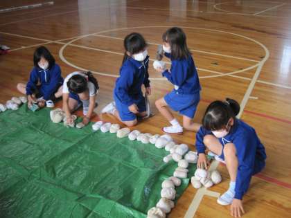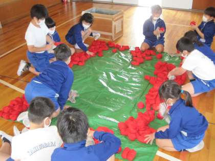 来年の1,2年生がすぐ使えるように、明日は玉の数も確認して、箱にしまいます。2年生がとても頼りになりました。ありがとう。今日の体育の準備も、友達と協力して玉を運んだり並べたりして準備をしてくれました。先生はとても助かりました。